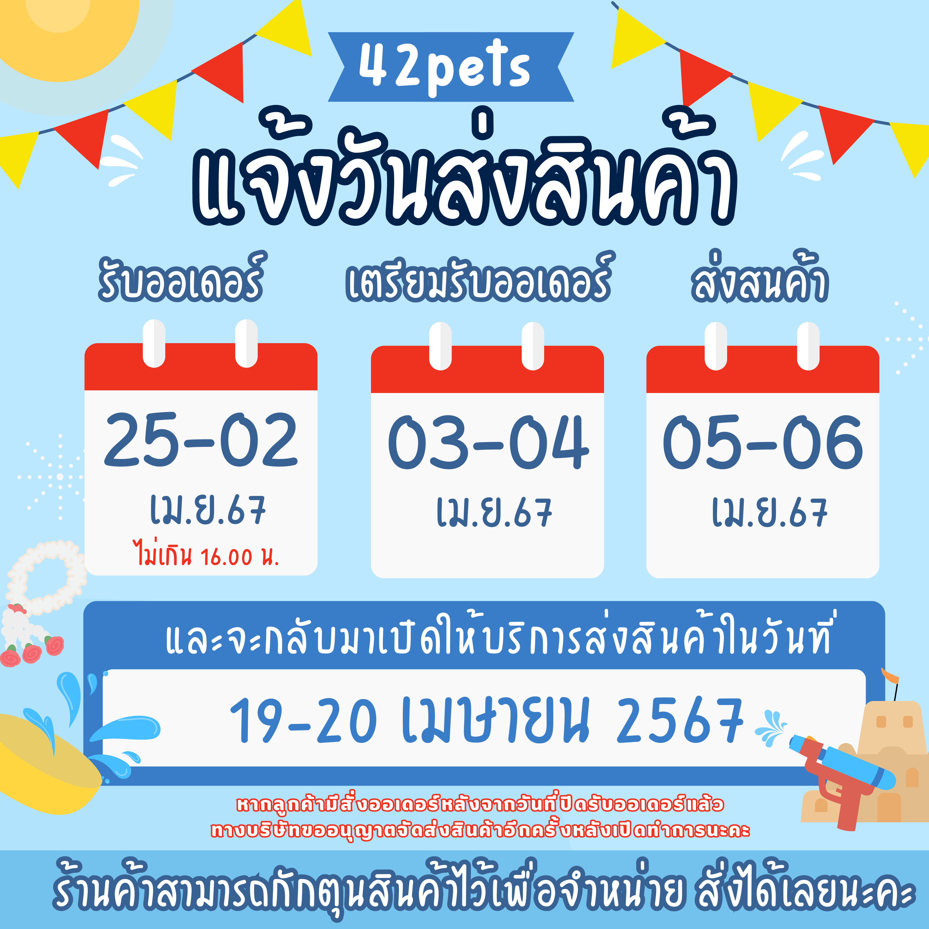 ⭐️42Pets Shop แจ้งรอบจัดส่งสินค้า ⭐️ ขออนุญาตแจ้งรอบจัดส่งรอบสุดท้ายก่อนวันหยุดยาวสงกรานต์