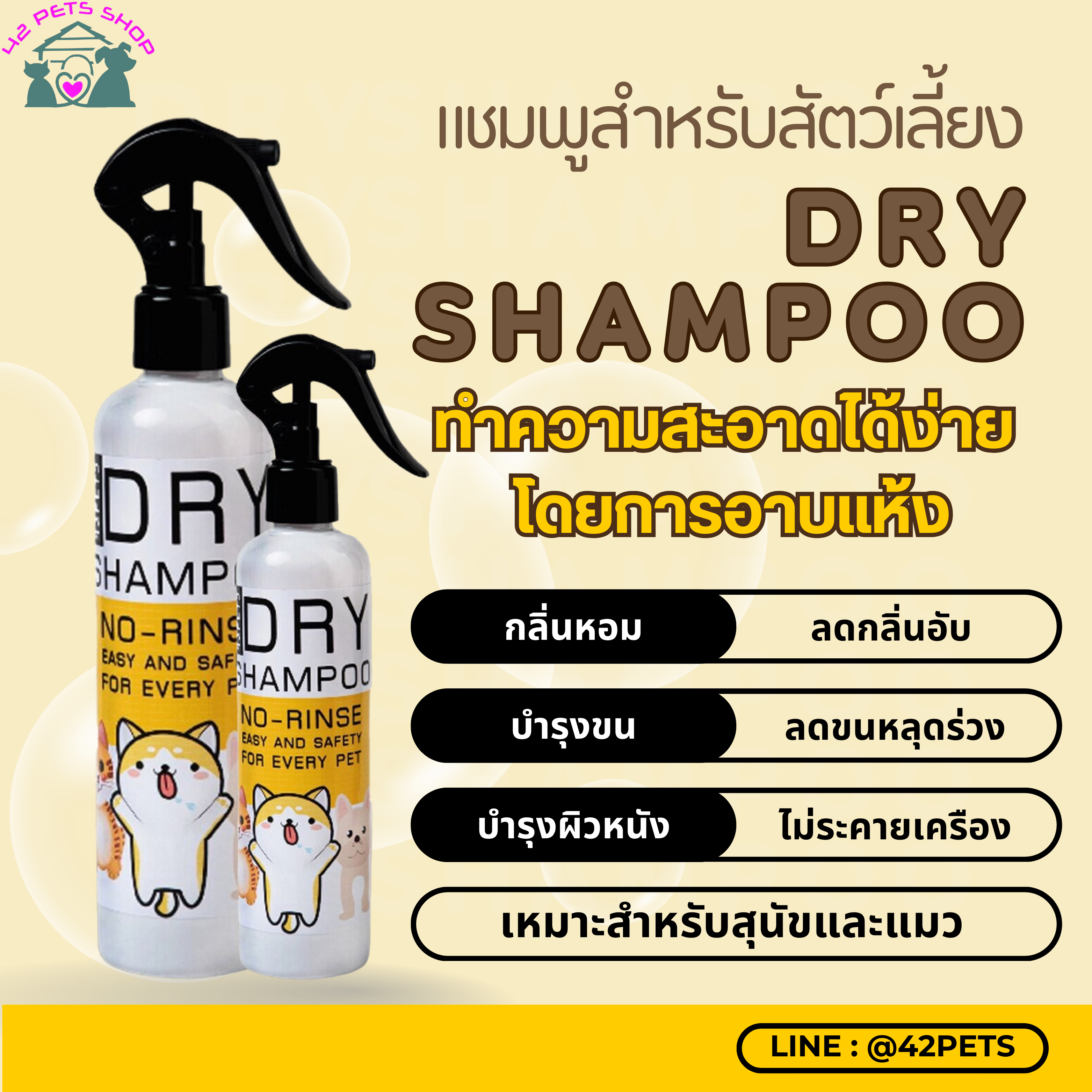 42Petsshop – Dry Shapoo 🐶🐱แชมพูอาบแห้งสำหรับสัตว์เลี้ยง.🐶🐱