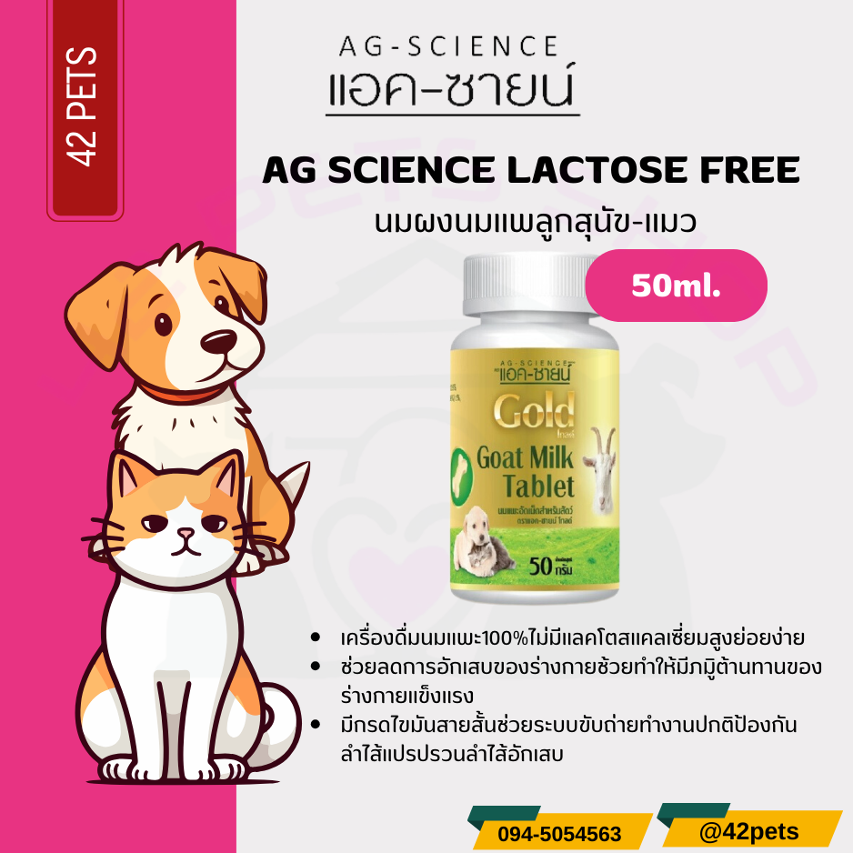AG – SCIENCE Gold Goat Milk Tablet นมแพะอัดเม็ด 50 G แอค-ซายน์ โกลด์ ขนมสุนัขและแมว