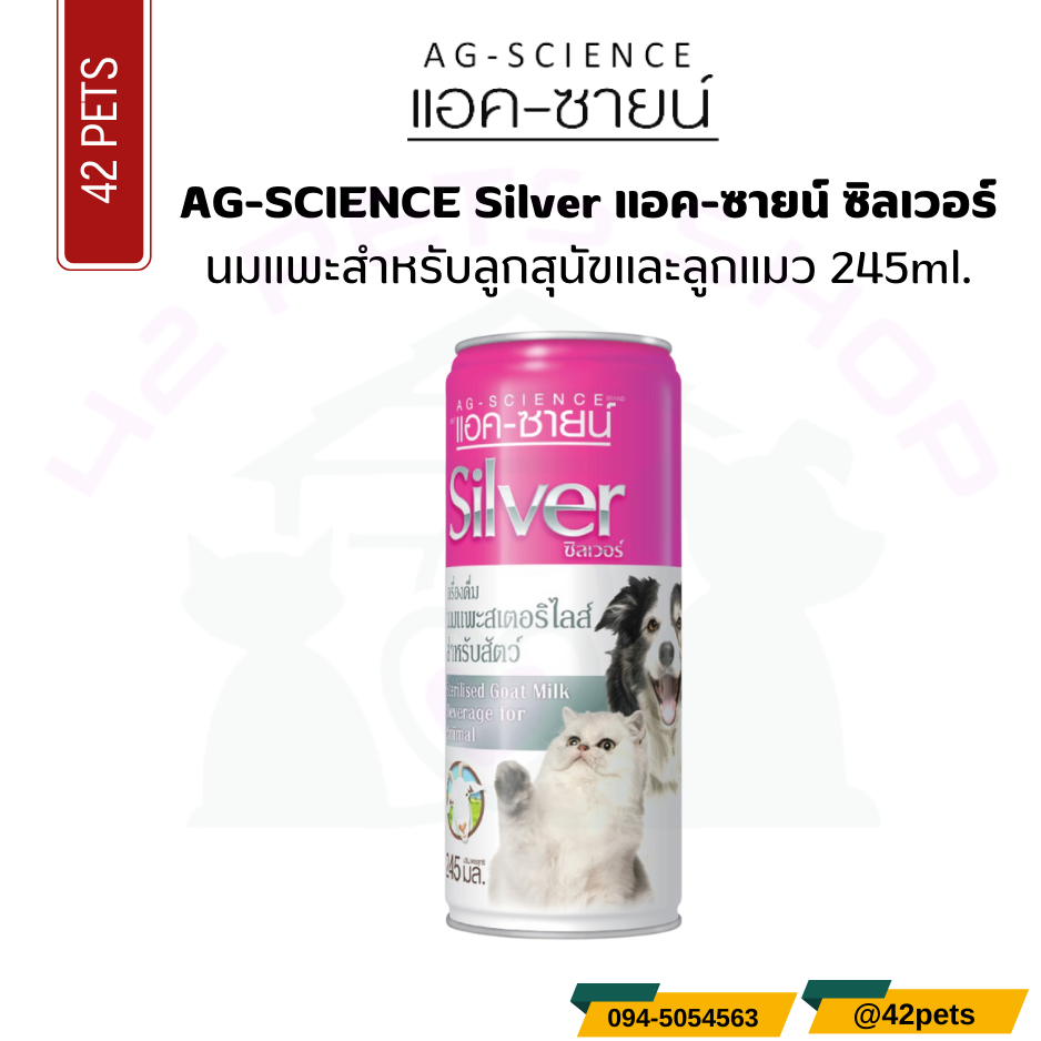 Ag-Science Silver Brand นมแพะสเตอริไลส์ สำหรับสุนัขและแมว 245 ML.