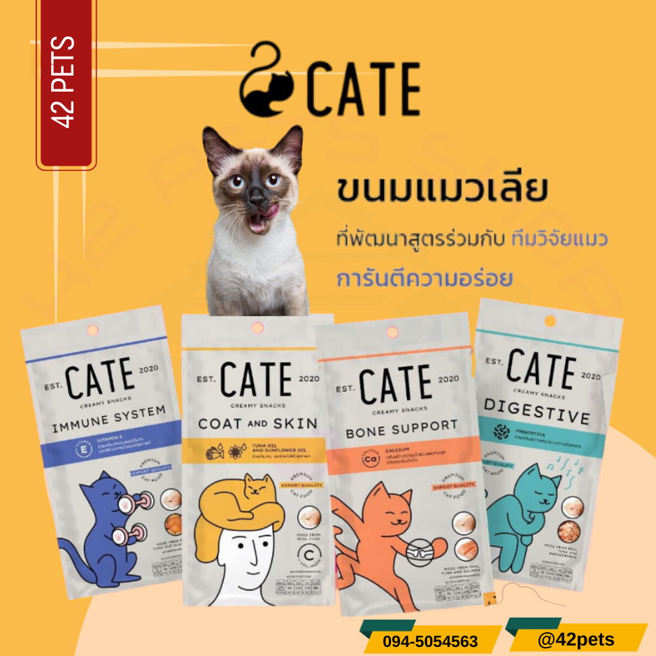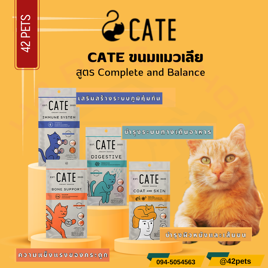 CATE Creamy Snack ขนมแมวเลีย สูตร Collagen, Prebiotics, Vitamin E and Lysine, Calcium