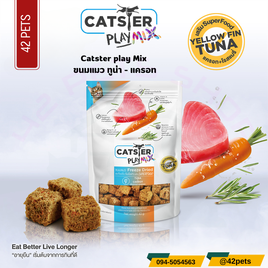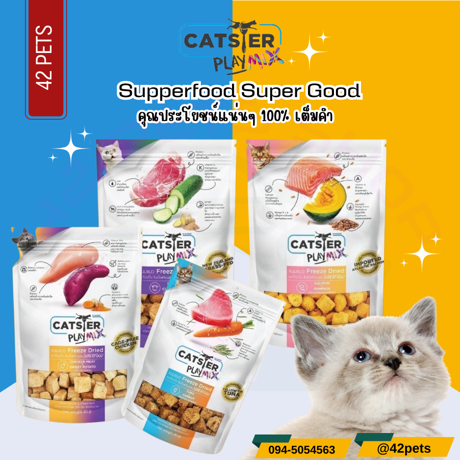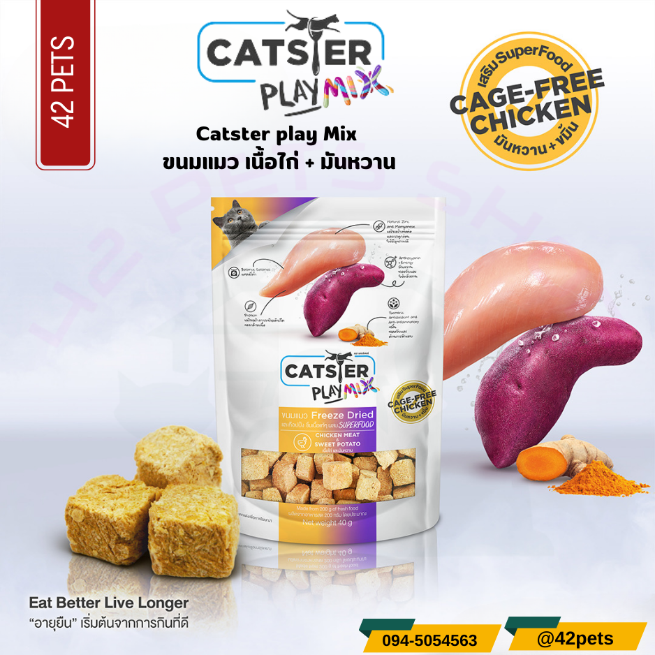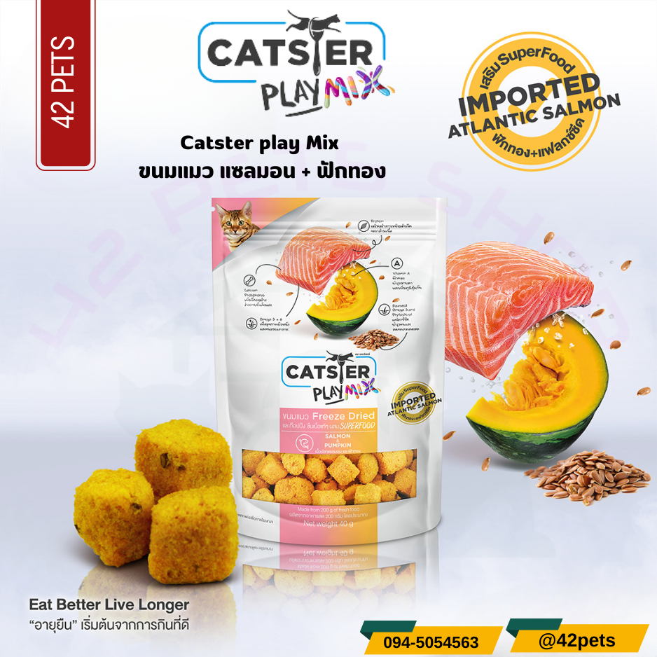 CATSTER PLAY MIX – Freeze Dried Treats & Toppers for Cats ขนมและทอปปิ้งฟรีซดายสำหรับแมว สินค้าคุณภาพระดับโลก เนื้อชิ้นแท้ๆ 100% เต็มๆคำ “อร่อยเหมือนกินของสด”