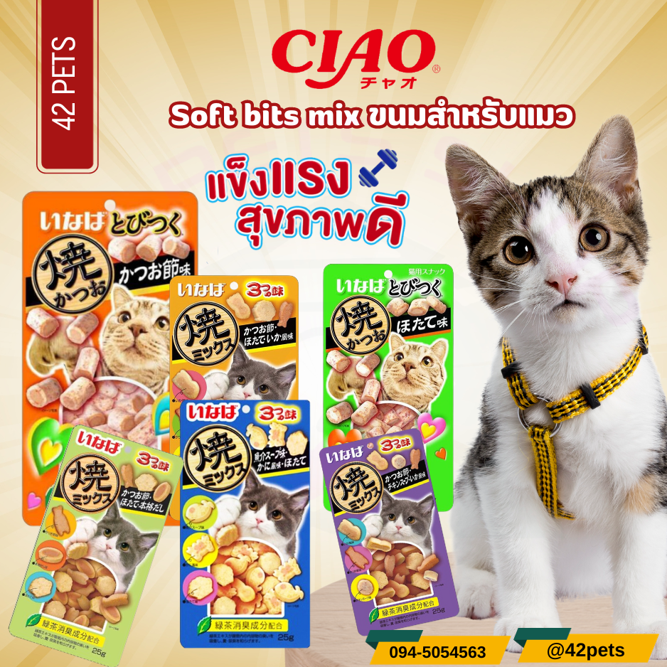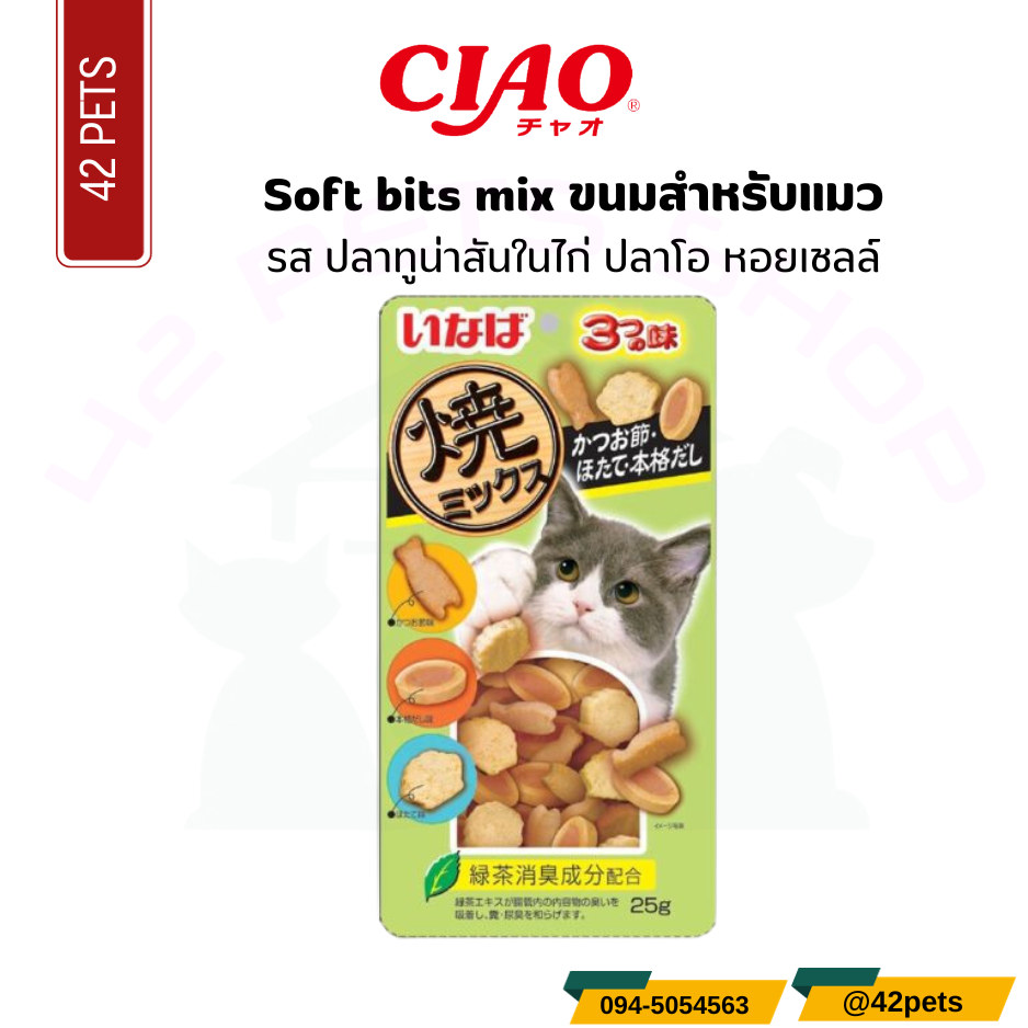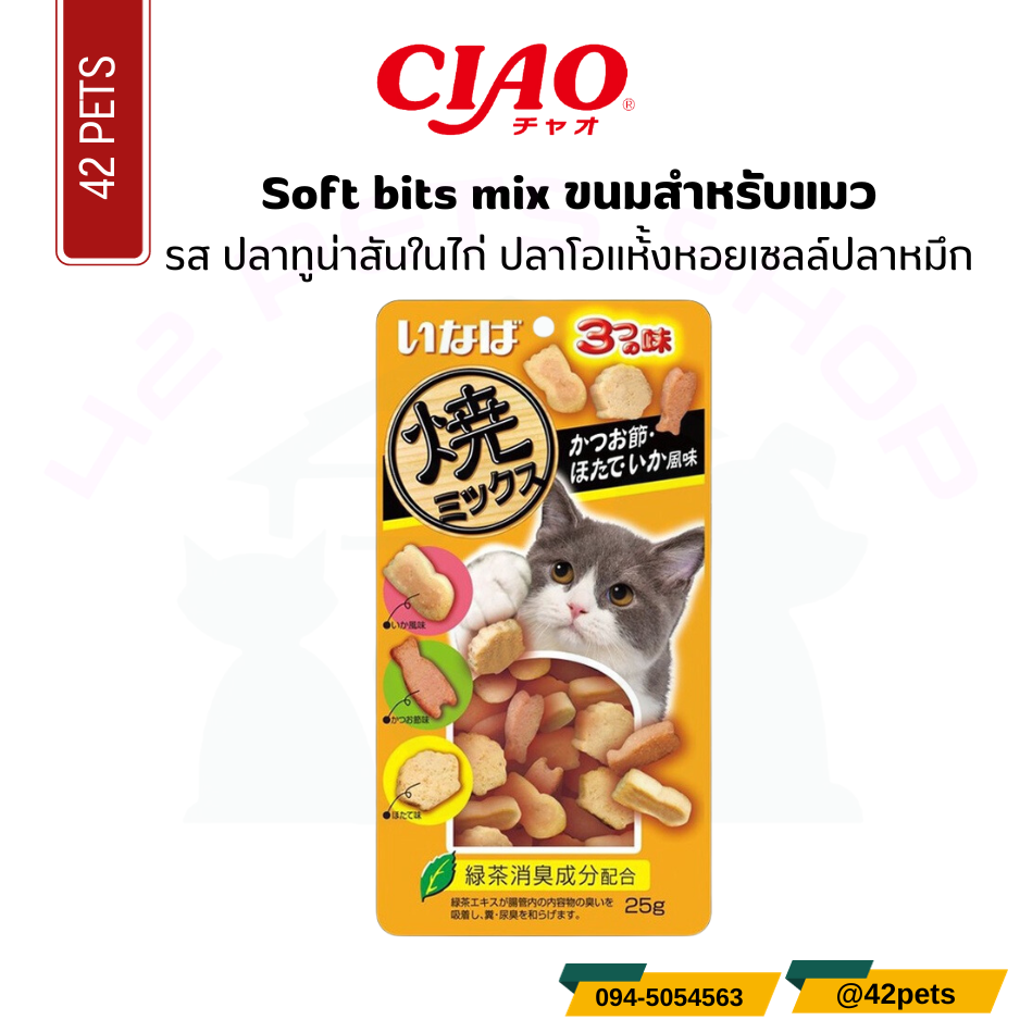 CIAO SOFT BITE ขนมแมวเม็ดนุ่ม ซอฟท์ บิต ขนมแมวแสนอร่อยจากญี่ปุ่น ปริมาณ 25-30 กรัม มีหลายรสให้เลือก