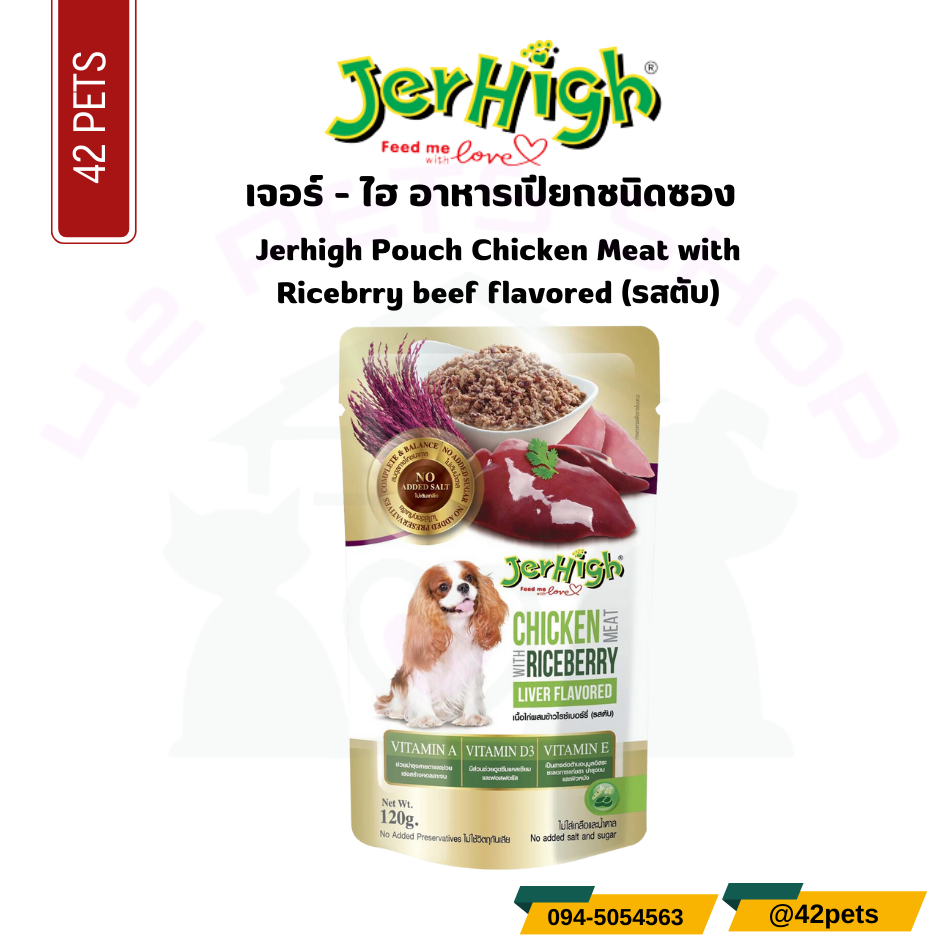 อาหารเปียกสุนัข เนื้อไก่ผสมข้าวไรซ์เบอร์รี่ (รสตับ) ตราเจอร์ไฮ