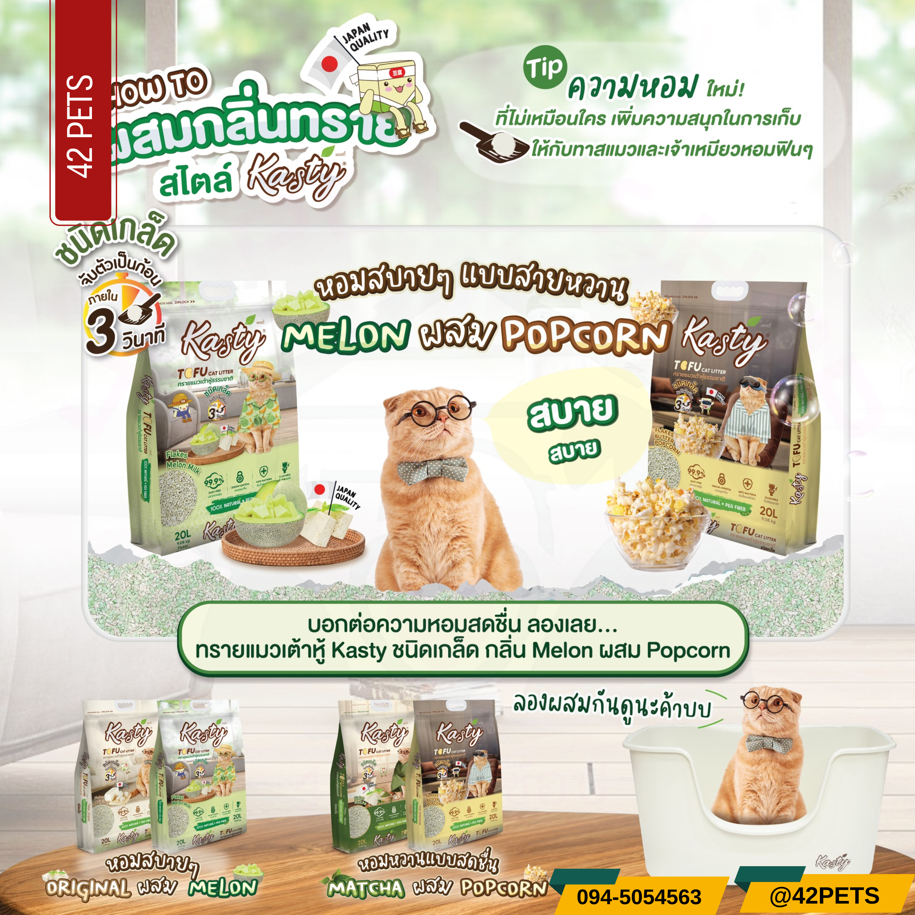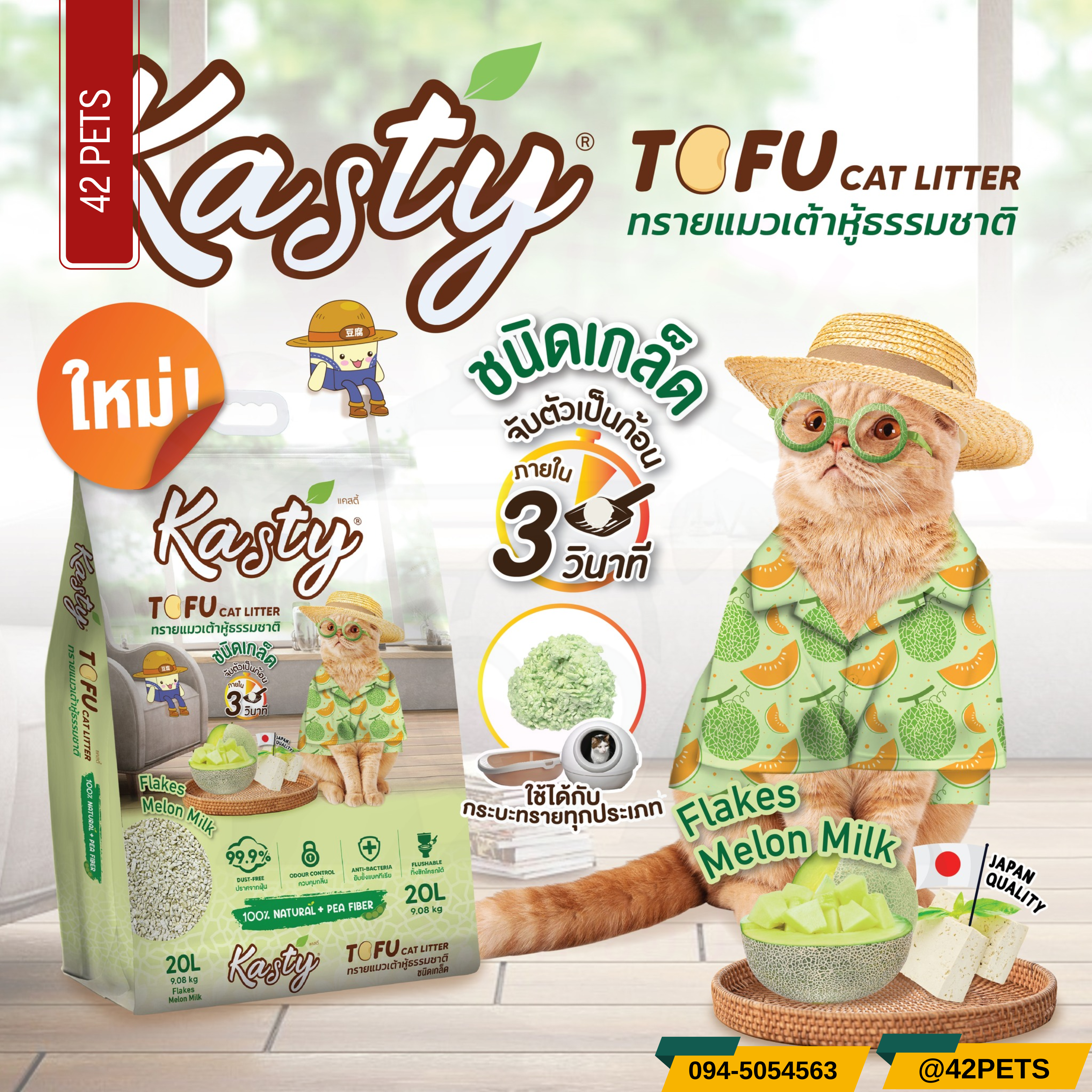 ทรายแมวเต้าหู้แคสตี้ ชนิดเกล็ด กลิ่นใหม่! หอม ต้องลอง..กลิ่นนมเมล่อน.. 🥛🍈