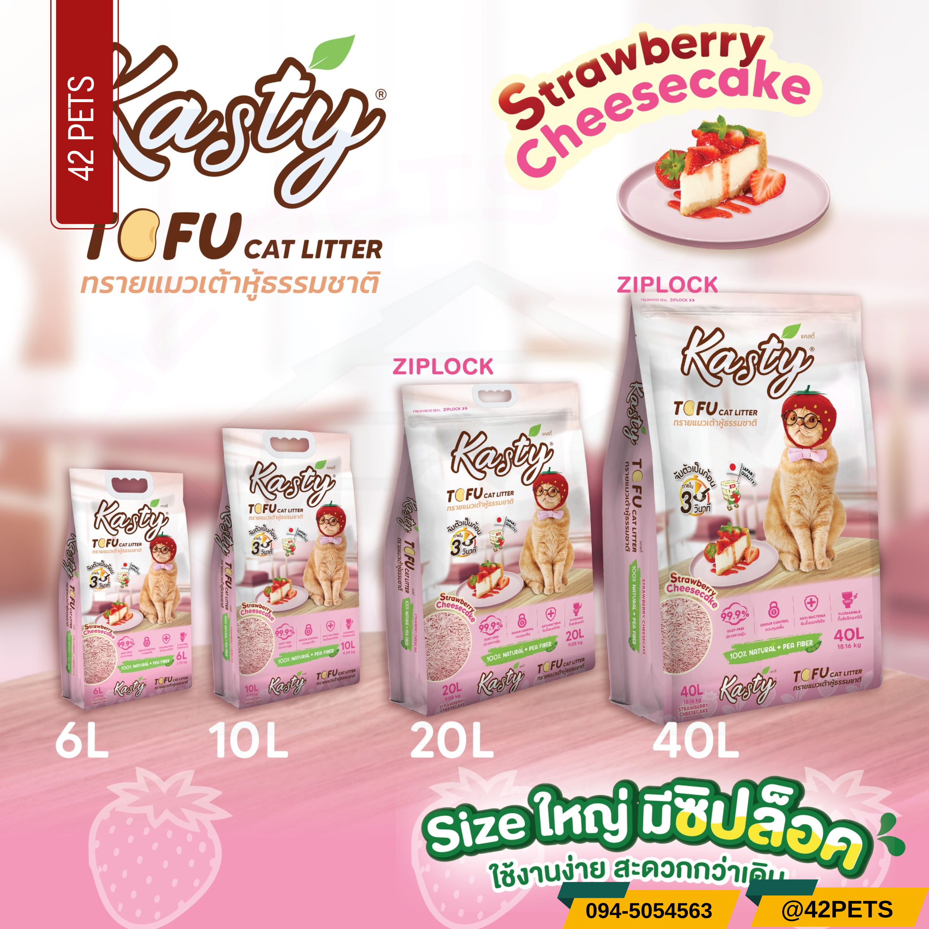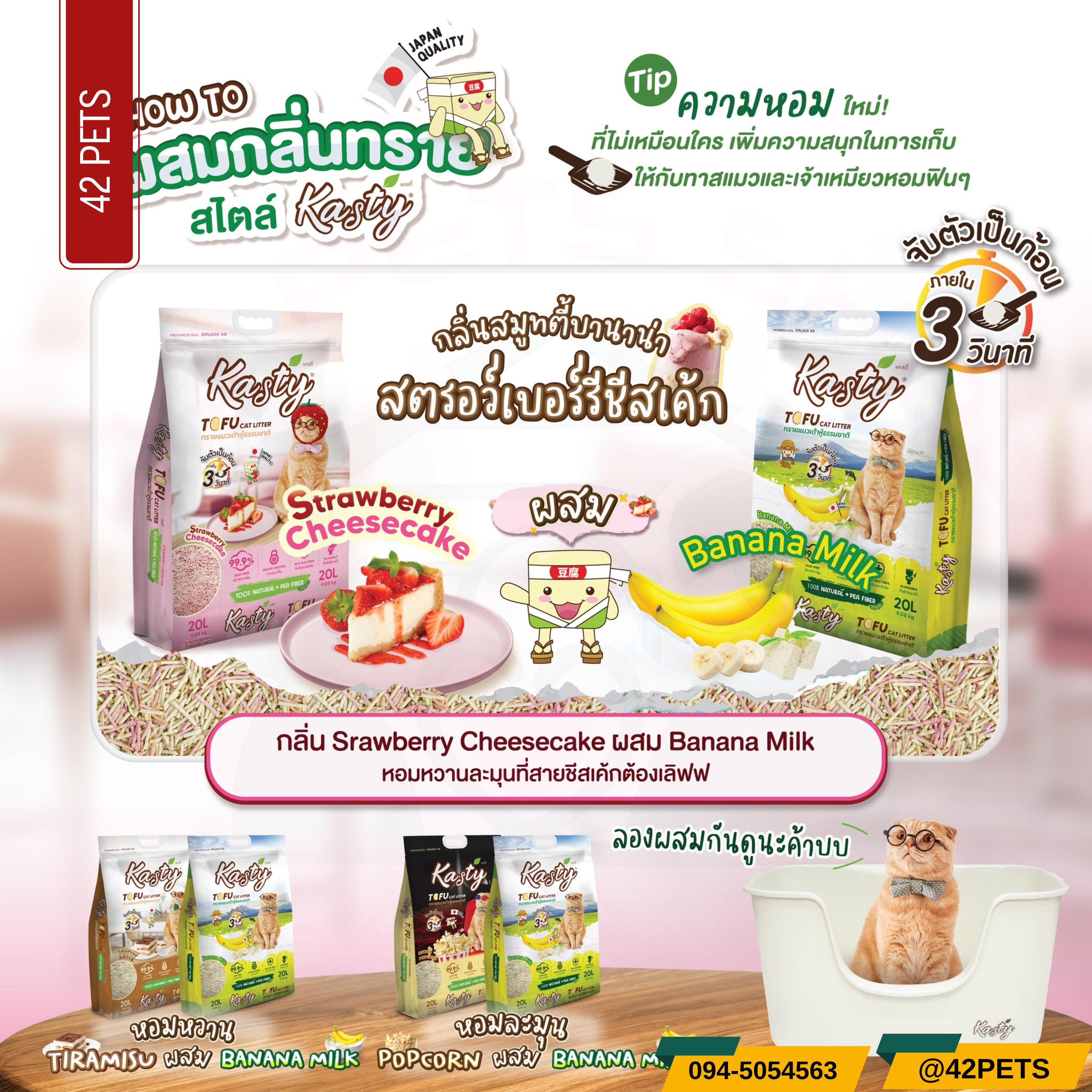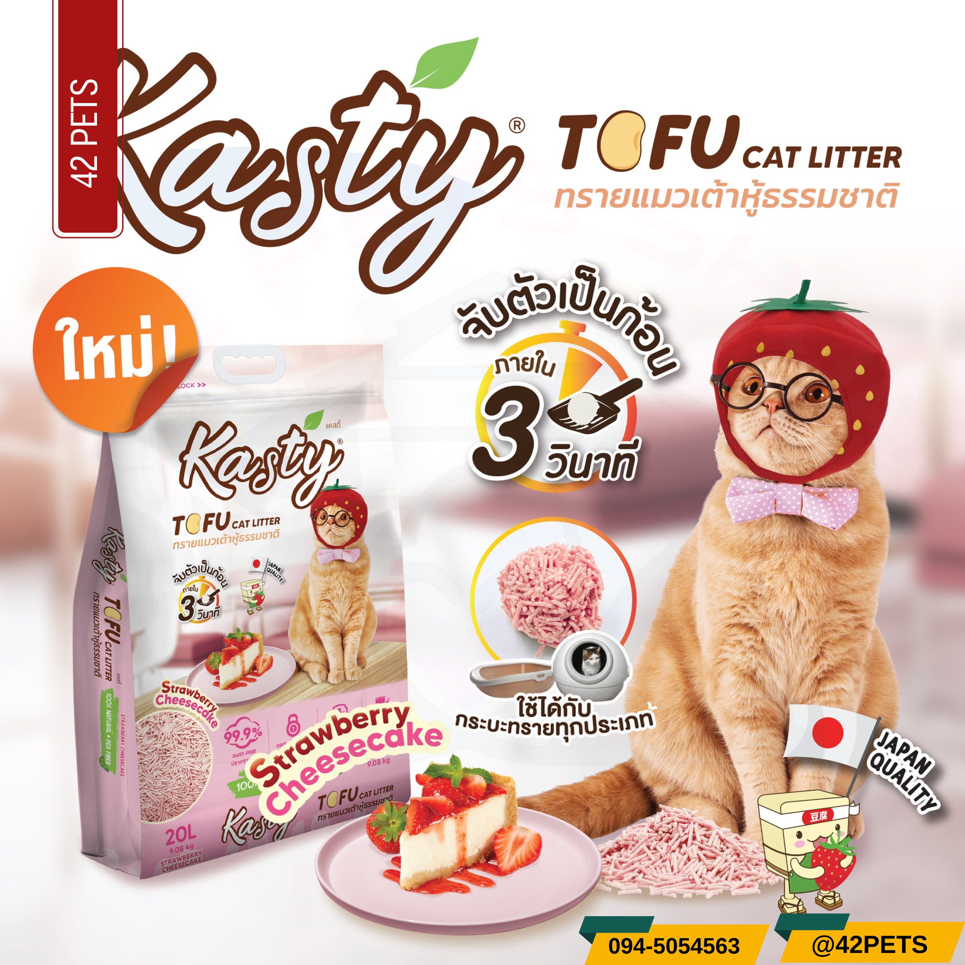📣 ใหม่! ทรายแมวเต้าหู้แคสตี้ กลิ่นใหม่! หอม ต้องลอง..สตรอเบอร์รี่ชีสเค้ก.. 🍓🧀🍰