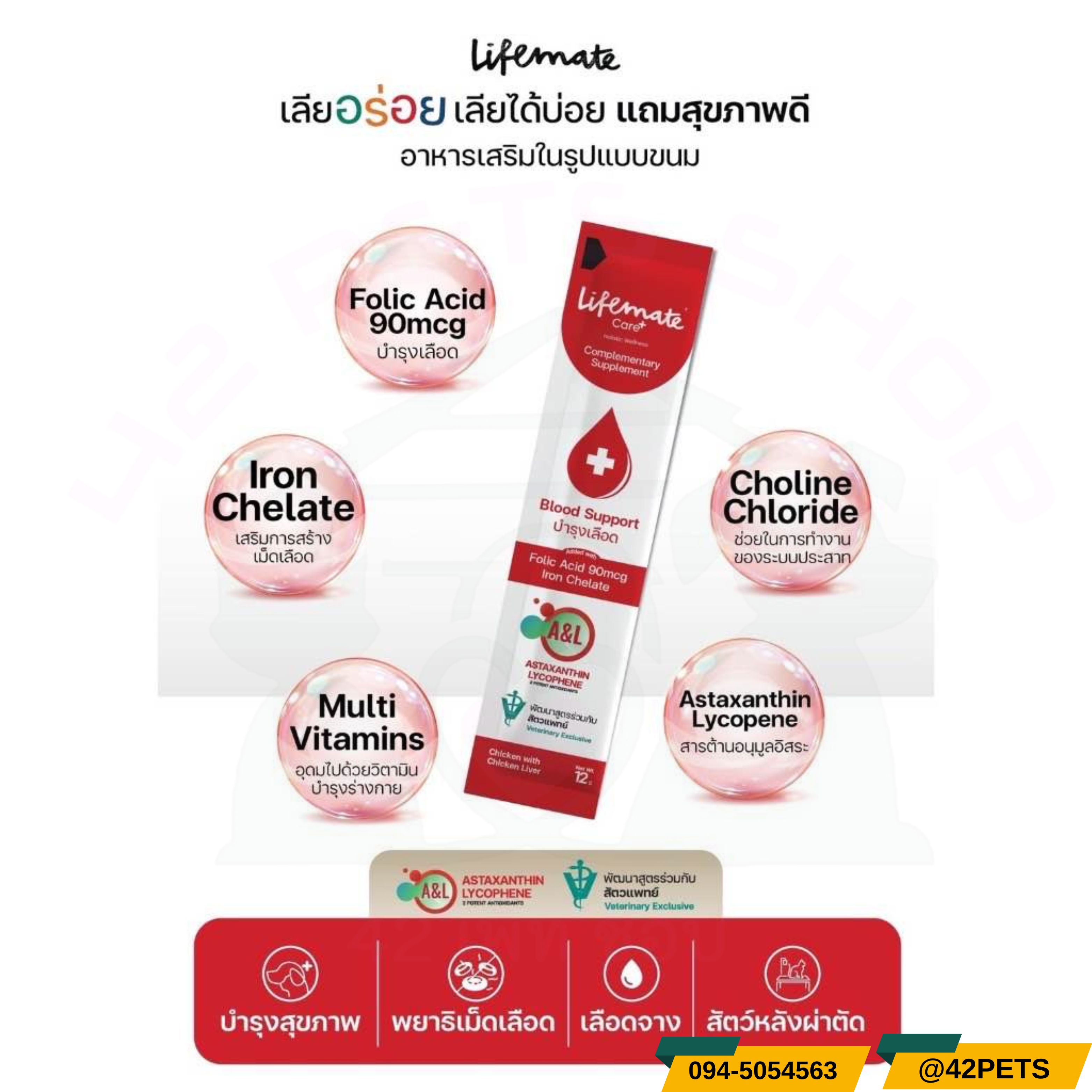 ช่วยบำรุงสุขภาพ เสริมสร้างการสร้างเม็ดเลือด บำรุงเลือด เสริมการฟื้นตัวหลังผ่าตัดหรือติดเชื้อพยาธิเม็ดเลือด รสไก่มูสผสมตับไก่