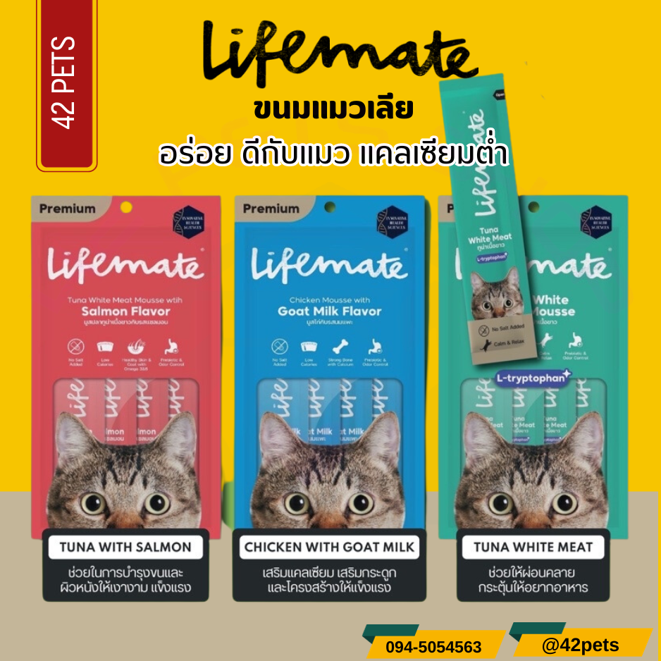 Lifemate แมวเลีย ขนมแมวเลีย เกรดพรีเมี่ยม ไลฟ์เมท ขนมแมวเลีย ขนาด 12g x 4 ซอง Mousse