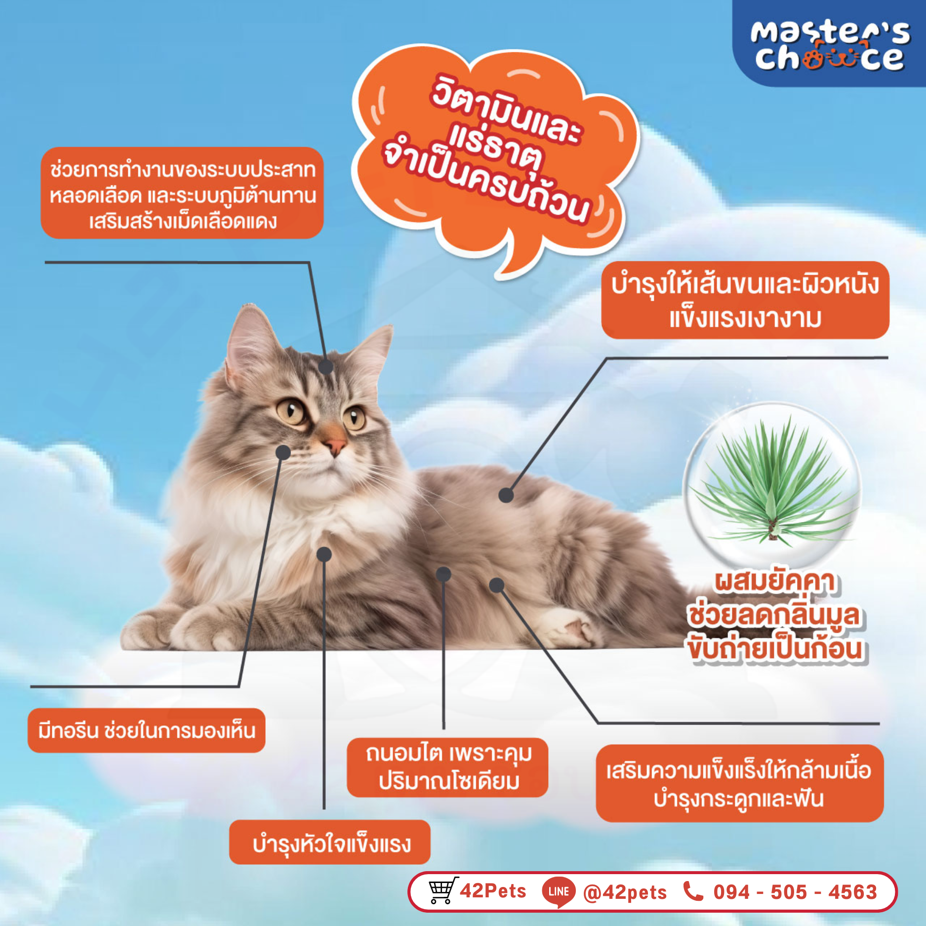 ผลิตจากวัตถุดิบคุณภาพเยี่ยม เสริมวิตามินแร่ธาตุจำเป็นครบถ้วน เพื่อบำรุงสุขภาพน้องแมว