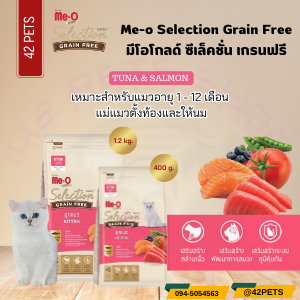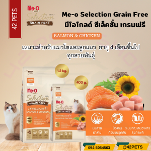 มีโอ โกลด์ ซีเล็คชั่น สูตรเกรนฟรี อาหารแมวเม็ด 400g. และ 1.2 kg. และ 1.2 kg.