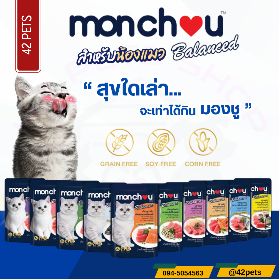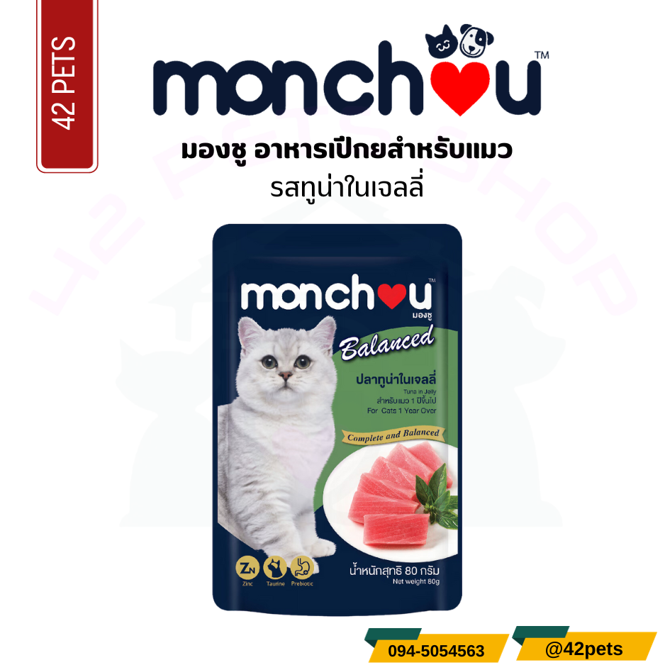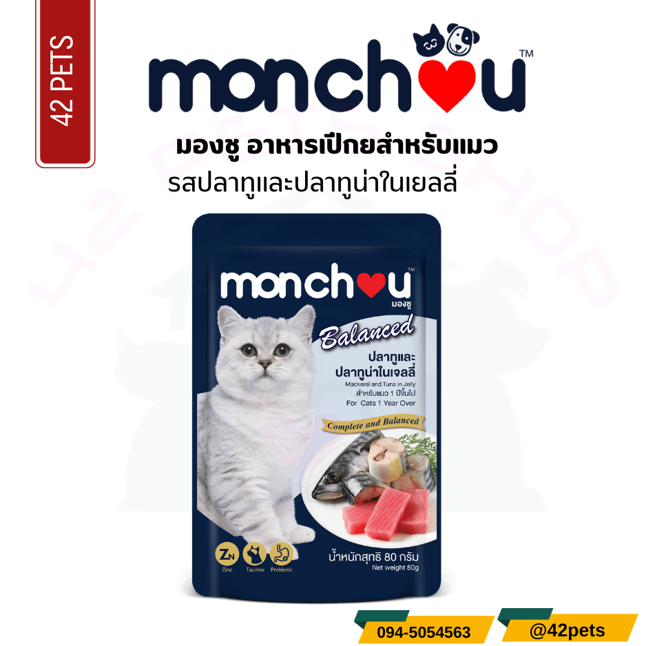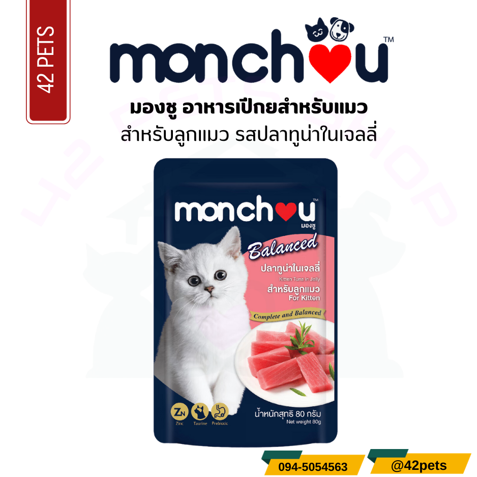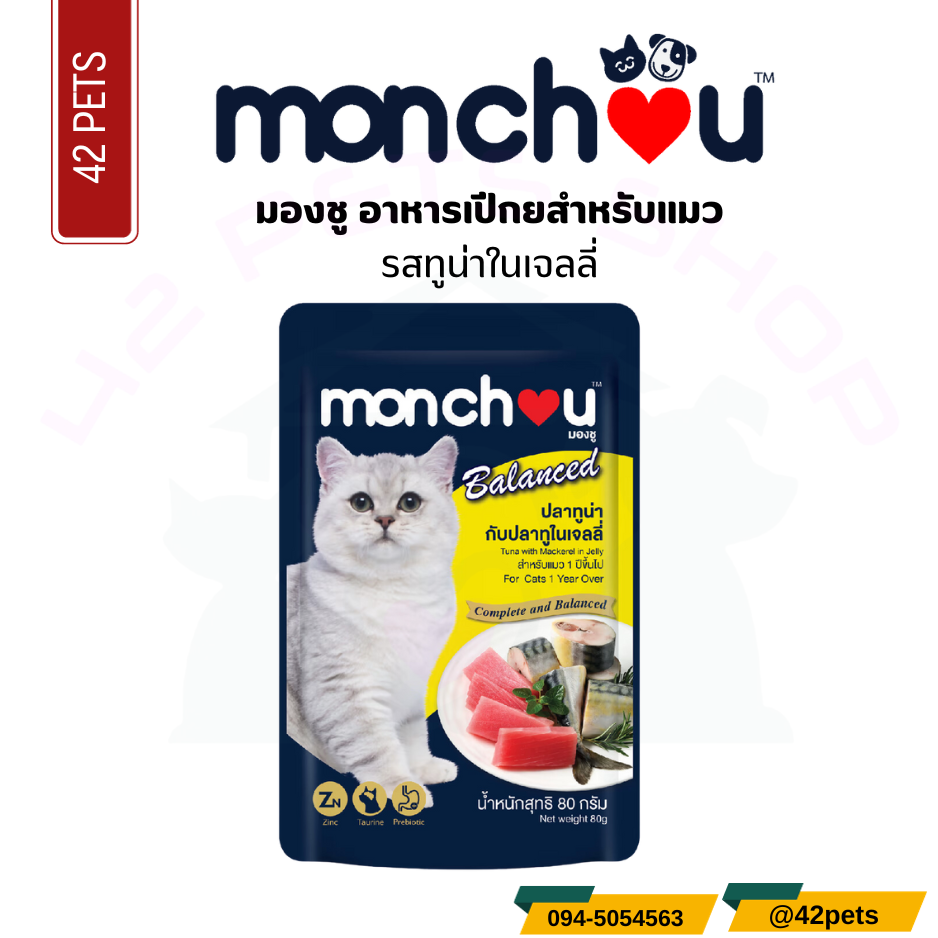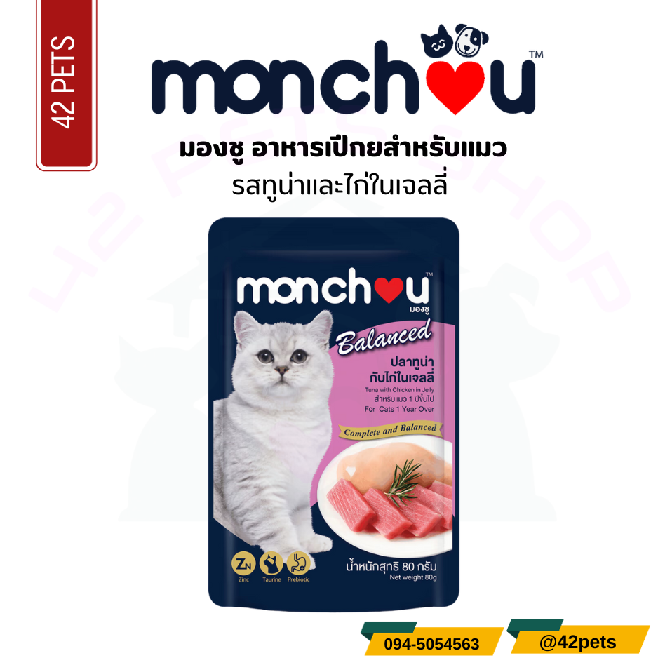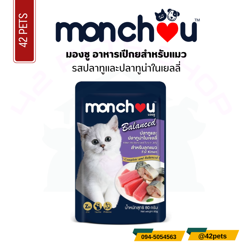Monchou มองชู อาหารเปียก สำหรับแมวโตลูกแมว 80g.