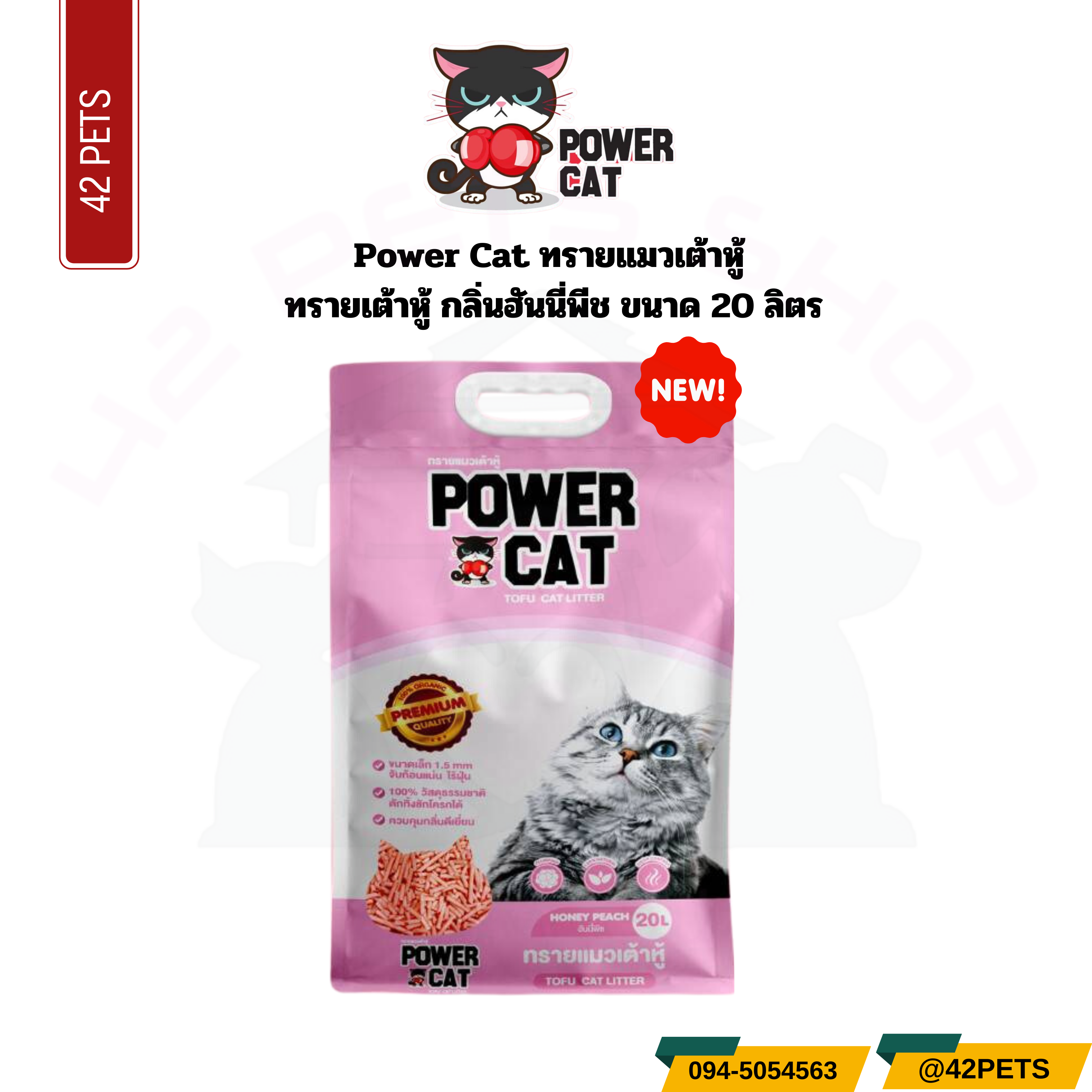 Power Cat ทรายแมวเต้าหู้ ทรายเต้าหู้พาวเวอร์แคท กลิ่นฮันนี่พีช ขนาด 20L.