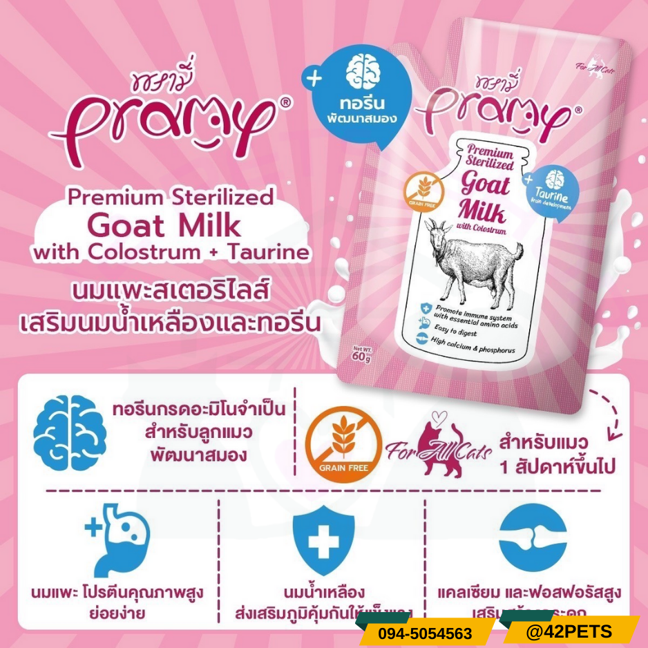 1.Pramy Goat Milk+Tuarine นมแพะเสริมนมน้ำเหลือง และทอรีน