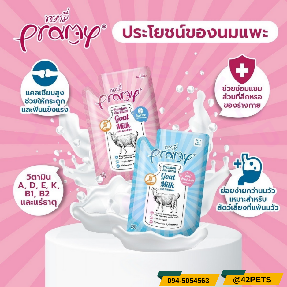 Pramy Goat Milk นมแพะเสริม สำหรับสัตว์เลี้ยง