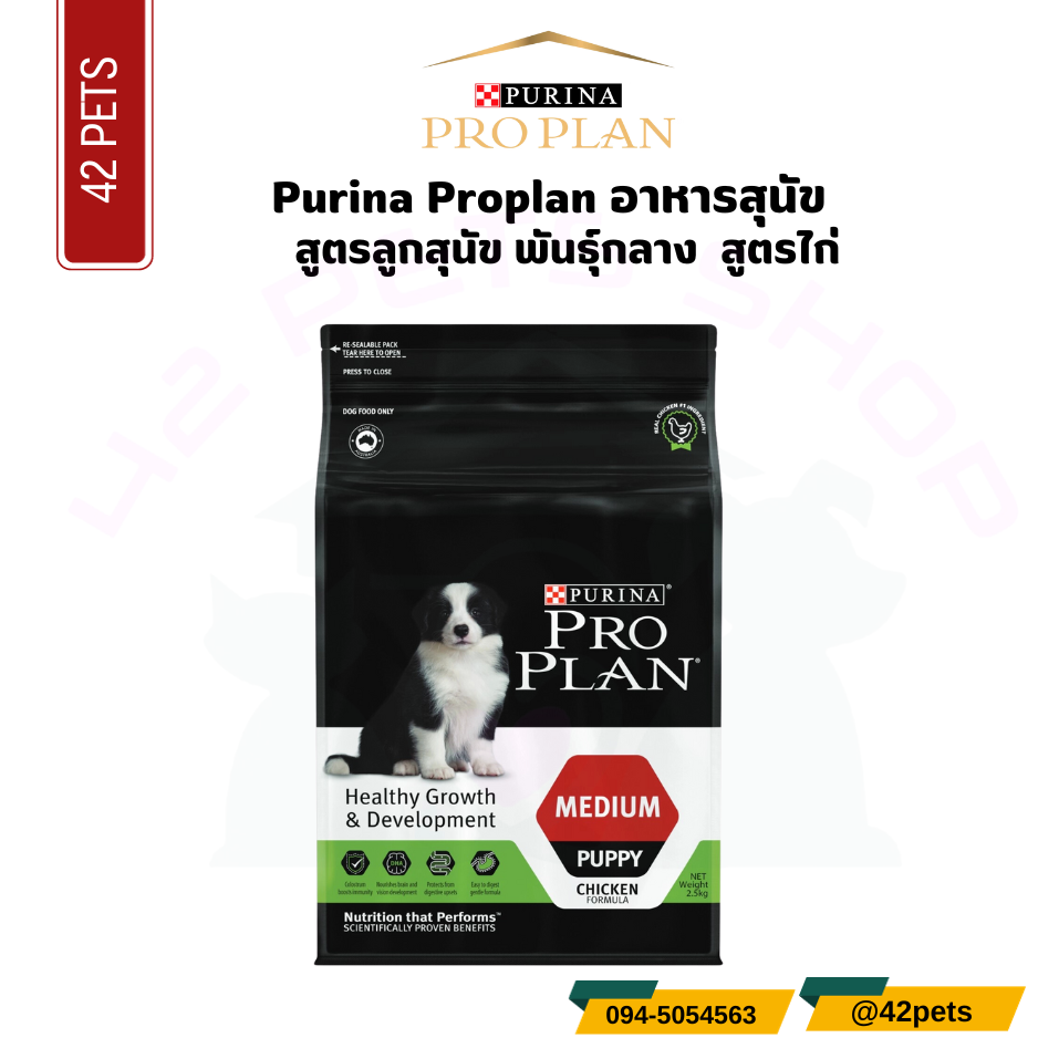 - PRO PLAN MEDIUM PUPPY อาหารสำหรับลูกสุนัขพันธุ์กลาง และเหมาะสำหรับสุนัขตั้งครรภ์ หรือแม่สุนัขช่วงให้นม