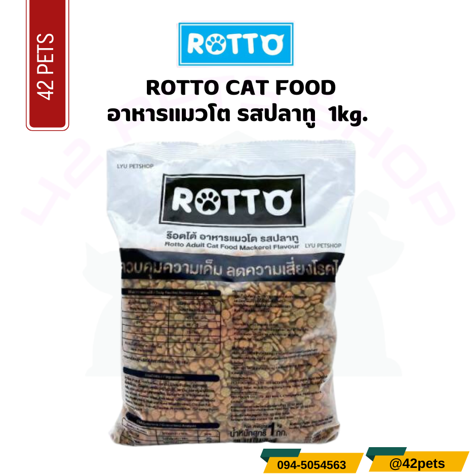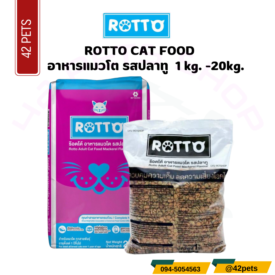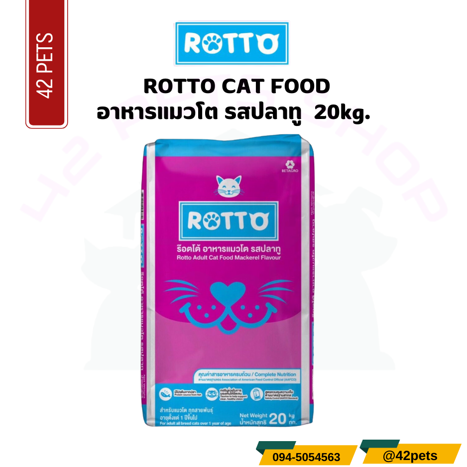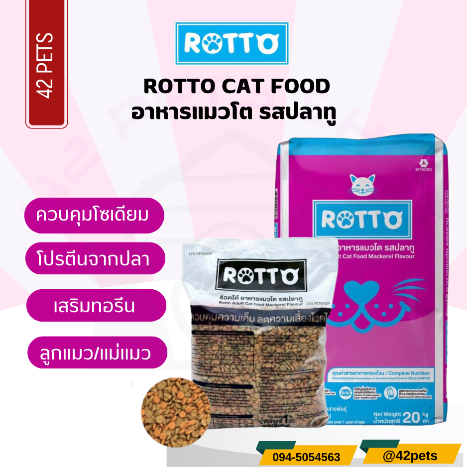 ROTTO อาหารแมวโต (เม็ดสีเดียว) รสปลาทู (แพ็ค 1 กก. x 20 ถุง) **ข้างในกระสอบจะแบ่งเป็นแพ็ค 1 กก. = 20 ถุง** **