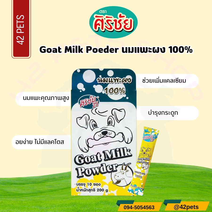 นมแพะผง ศิริชัย ขนาด 200g. สำหรับชงให้สุนัข แมว กระต่าย เม่น ชูก้า สัตว์เลี้ยงลูกด้วยนม