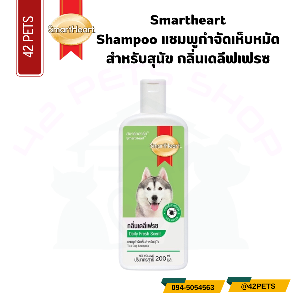 - ควรใช้สมาร์ทฮาร์ท แชมพูกำจัดเห็บสำหรับสุนัข กลิ่นเดลีเฟรช เป็นประจำทุกสัปดาห์ หรือเมื่อพบร่องรอยของเห็บบนตัวสุนัข