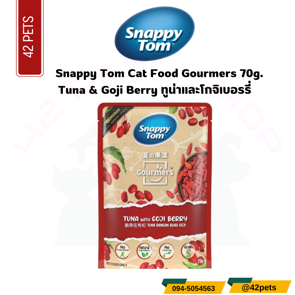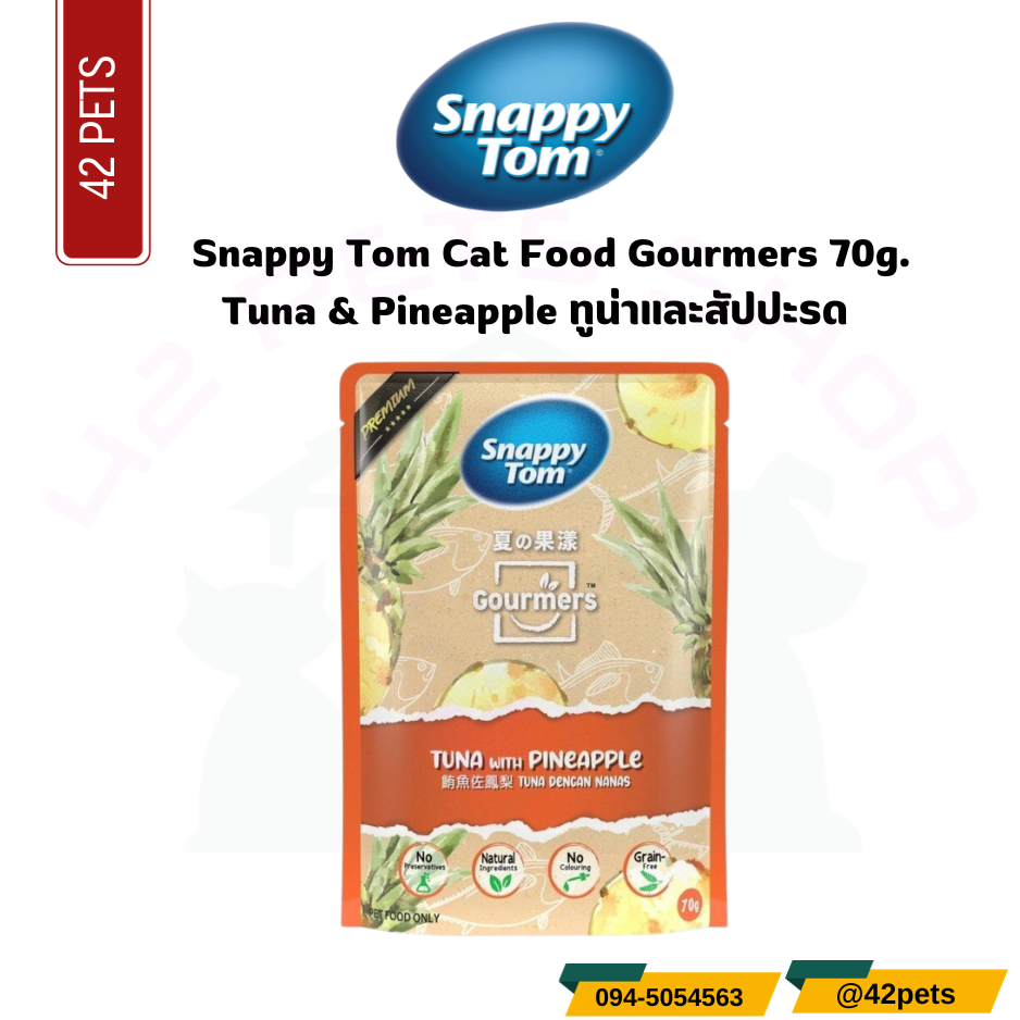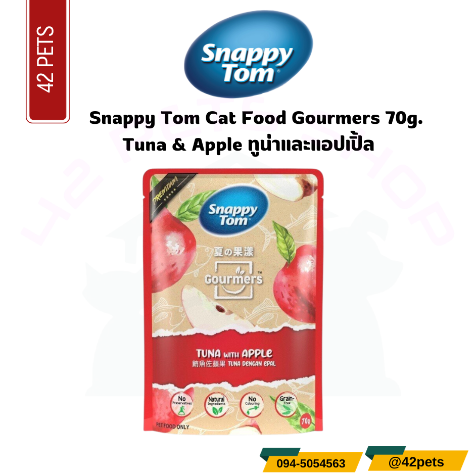อาหารเปียกแมว Snappy Tom สแนปปี้ทอม Gourmers (3 ทูน่ากับแอปเปิ้ล) สำหรับแมวโต วัตถุดิบธรรมชาติ 100% ขนาด 70 g.